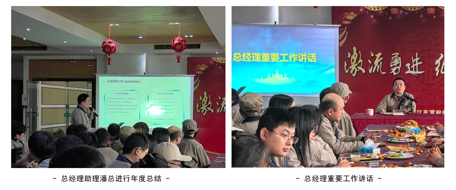 大會伊始,總經(jīng)理助理潘總對2025年公司工作成績與發(fā)展亮點進行了總結(jié);對2025年度優(yōu)秀員工進行了表彰;總經(jīng)理也就過去一年的總結(jié)發(fā)表了講話,肯定了2025年度全體員工的付出,也對2026年的工作進行了部署、提出新期望。