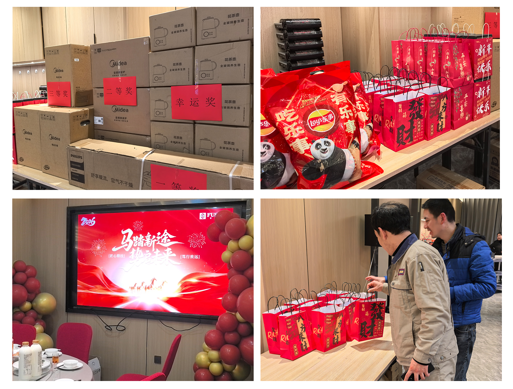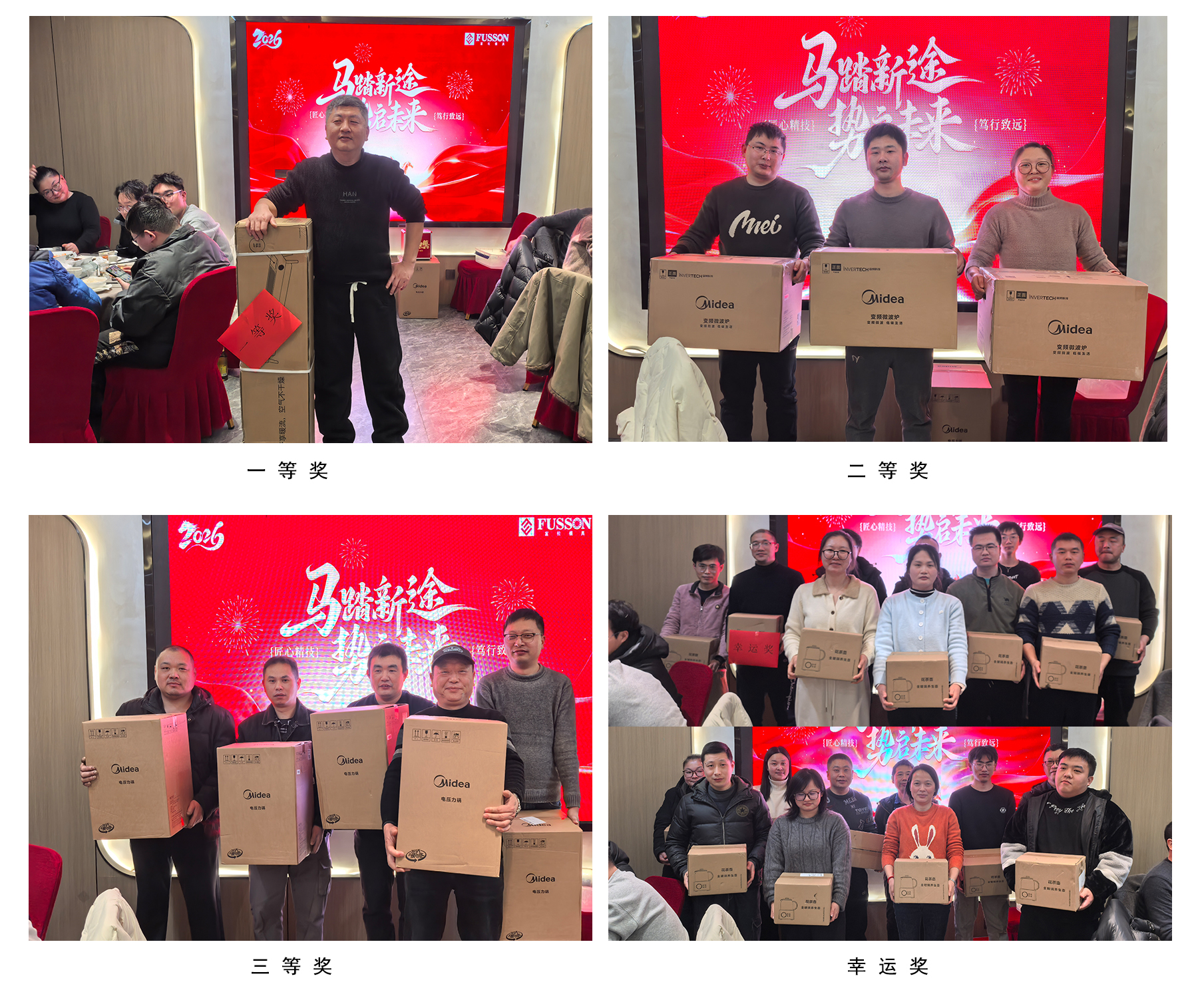 本次答謝晚宴還設置了多輪抽獎環(huán)節(jié),在一輪輪的抽獎中,最終近半數(shù)的幸運兒抱走了這些禮品。未中獎的小伙伴也獲得了總務準備的小禮品,祝福大家2026新年快樂、事事如意、八方來財!