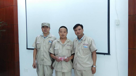 照片為公司代表把愛心捐款交到了老楊手中,并鼓勵老楊轉告妻子,要有戰勝疾病的信心和力量,安心治病,爭取早日康復。其老楊代表妻子和家人對所有關心和捐助的同事表示衷心的感謝。