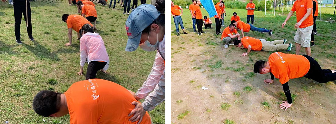 燒烤結(jié)束之后,就要開始下午的團(tuán)隊(duì)PK賽,四個(gè)隊(duì)伍摩拳擦掌,氣氛被哄托到最高點(diǎn)。最后的勝負(fù)是通過接下來(lái)的三個(gè)比賽所積累的積分來(lái)獲得,分別是十人九足、挑戰(zhàn)極限和鼓動(dòng)人心三項(xiàng)。為了自己團(tuán)隊(duì)的勝利,大家鉚足干勁想要發(fā)揮自己最大的力量。在下午的比賽中有人摔倒了,但是沒有關(guān)系,爬起來(lái),繼續(xù)挑戰(zhàn),關(guān)鍵時(shí)刻不能給自己的隊(duì)伍拖后腿,經(jīng)過幾輪積分賽,最終只有一支隊(duì)伍獲得了最后勝利,獲得了獎(jiǎng)品。但是其他三隊(duì)的隊(duì)長(zhǎng)就要接受懲罰--俯臥撐,隊(duì)長(zhǎng)完成不了的,會(huì)有隊(duì)友主動(dòng)站出來(lái)替隊(duì)長(zhǎng)繼續(xù)完成。在下午團(tuán)建的最后,公司的所有員工在草坪上都排好拍下了合照,記錄下了這一美好的時(shí)刻。